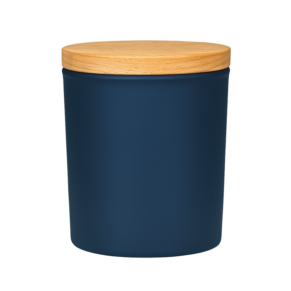 Pojemnik szklany 320ml do zalewu świec granat z pokrywką drewnianą 100 sztuk