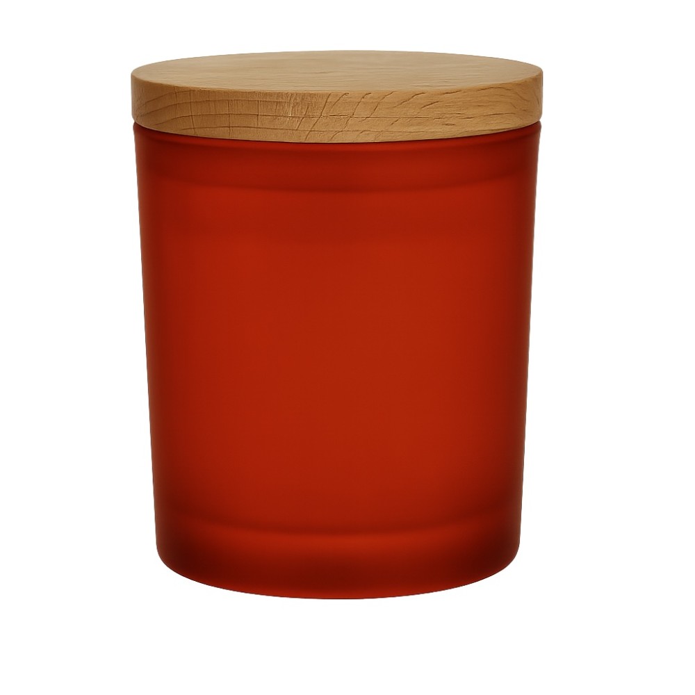 {INSERT_HTML:60;} Szkło  - Pojemnik szklany 365ml do zalewu świec czerwony z pokrywką drewnianą 100 sztuk