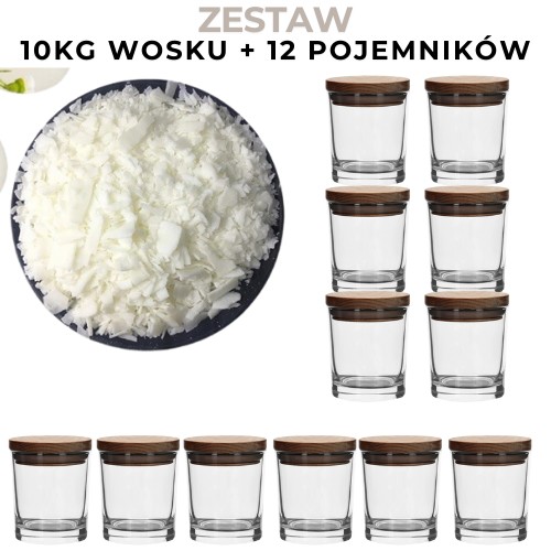 ZESTAW 10kg Wosk Sojowy Y50 12 pojemników z pokrywką drewnianą