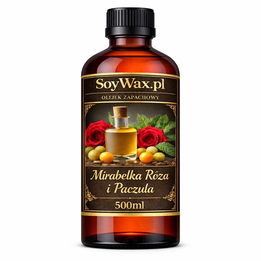 Nasycany i owocowy olejek zapachowy z mirabelki, róży i paczuli