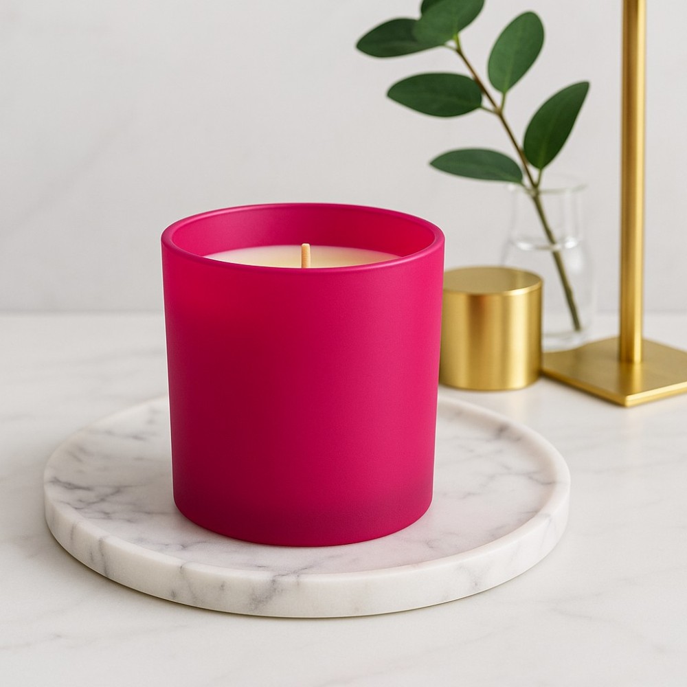 Pojemnik szklany do zalewu świec różowy mat