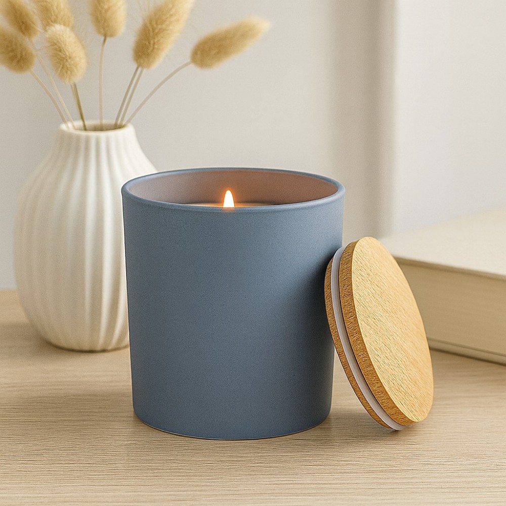 Pojemnik szklany do zalewu świec szafir z pokrywką drewnianą