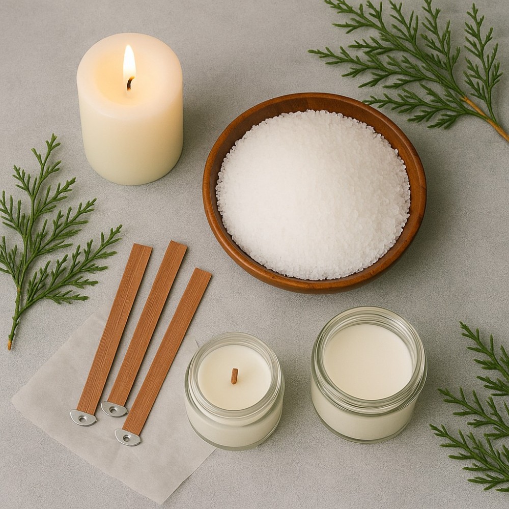 Stearyna to biały, woskowy tłuszcz roślinny, który jest używany jako składnik w produkcji świec. Jest ona zwykle dodawana do parafiny lub innego wosku, aby poprawić jego właściwości palenia i zmniejszyć ilość sadzy, jaką wytwarza płonąca świeca. Stearyna jest również stosowana jako składnik kosmetyków, mydeł i innych produktów, gdzie działa jako emolient i stabilizator formułacji.