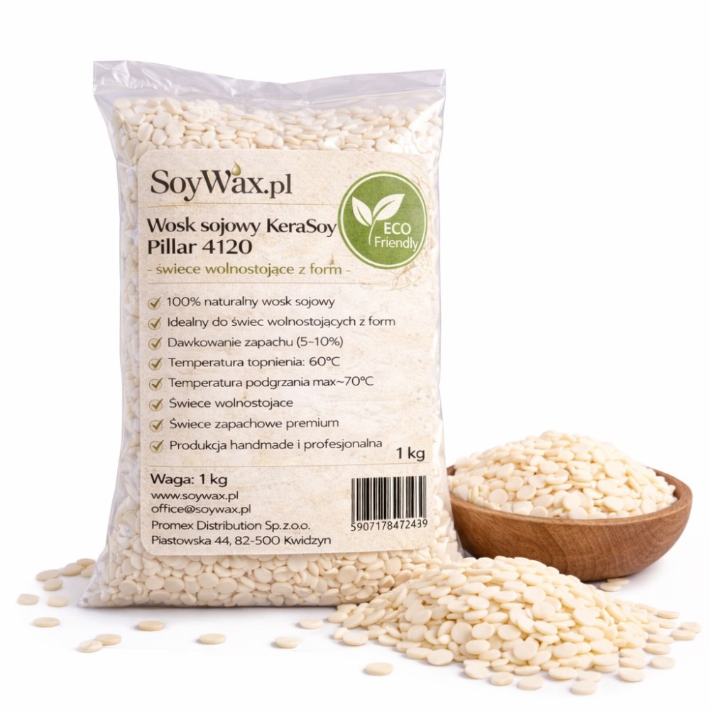 Poszukujesz idealnego wosku do stworzenia swoich własnych, wyjątkowych świec wolnostojących? Wosk Sojowy KeraSoy Pillar to produkt, który spełni Twoje oczekiwania! Ten twardy wosk, dostępny w postaci praktycznych pastylek, doskonale nadaje się do tworzenia świec sojowych i zapachowych. Wosk KeraSoy Pillar to w pełni opracowany wosk sojowy przeznaczony specjalnie do świec wolnostojących, który nie wymaga żadnych dodatków. To całkowicie naturalny produkt, który świetnie łączy się z olejkami zapachowymi, a dzięki swoim wyjątkowym właściwościom praca z nim staje się przyjemnością. Tworząc swoje świece z Woskiem Sojowym KeraSoy Pillar, możesz być pewien, że otrzymasz piękne, gładkie taflę wykonanej świecy, która z pewnością zachwyci każdego. Nie czekaj dłużej, wypróbuj Wosk Sojowy KeraSoy Pillar i stwórz swoje własne, unikalne dzieło!