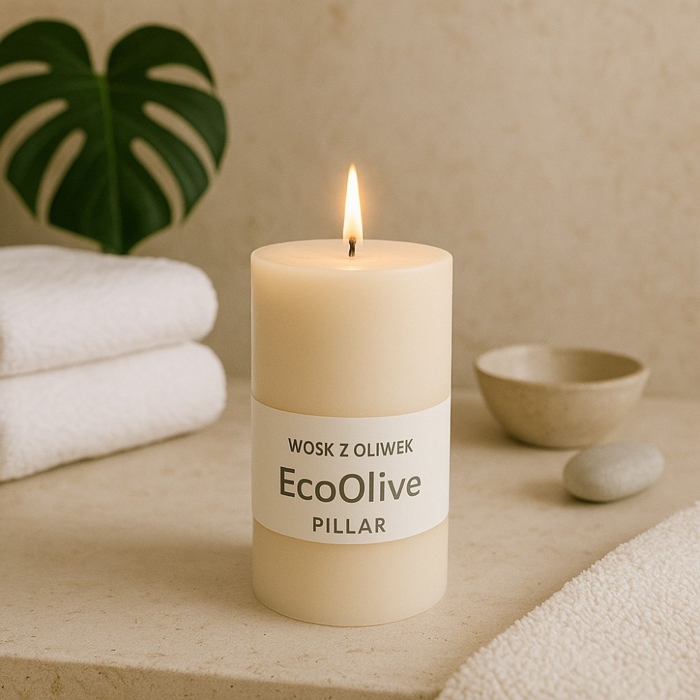 Zanurz się w magicznym świecie naturalnego oświetlenia świecą wykonaną z Wosku z oliwek EcoOlive Pillar Blend!